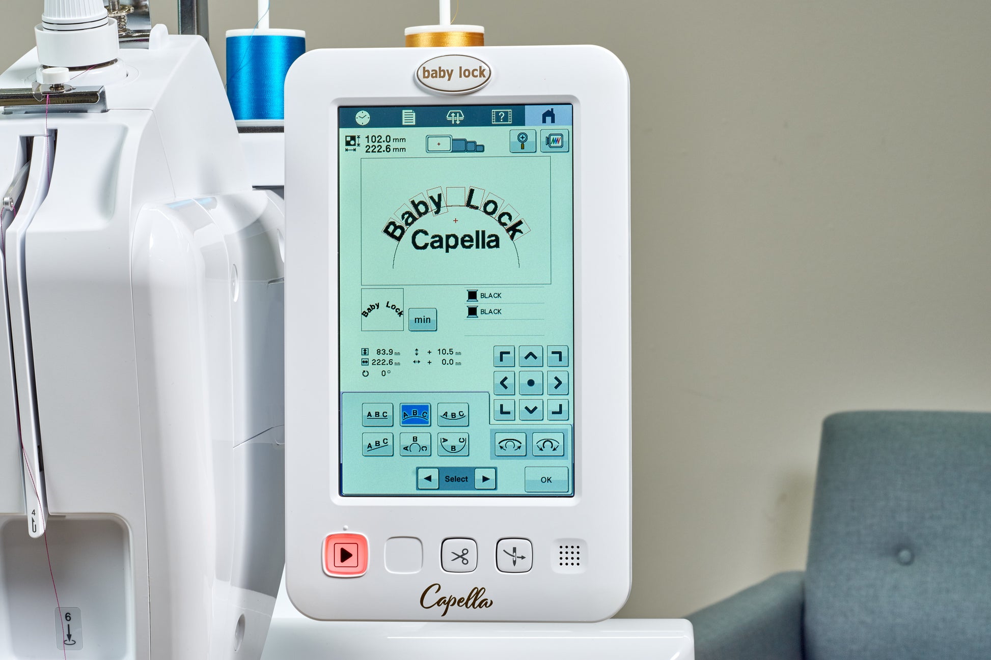The Baby Lock Capella embroidery machine features include:
