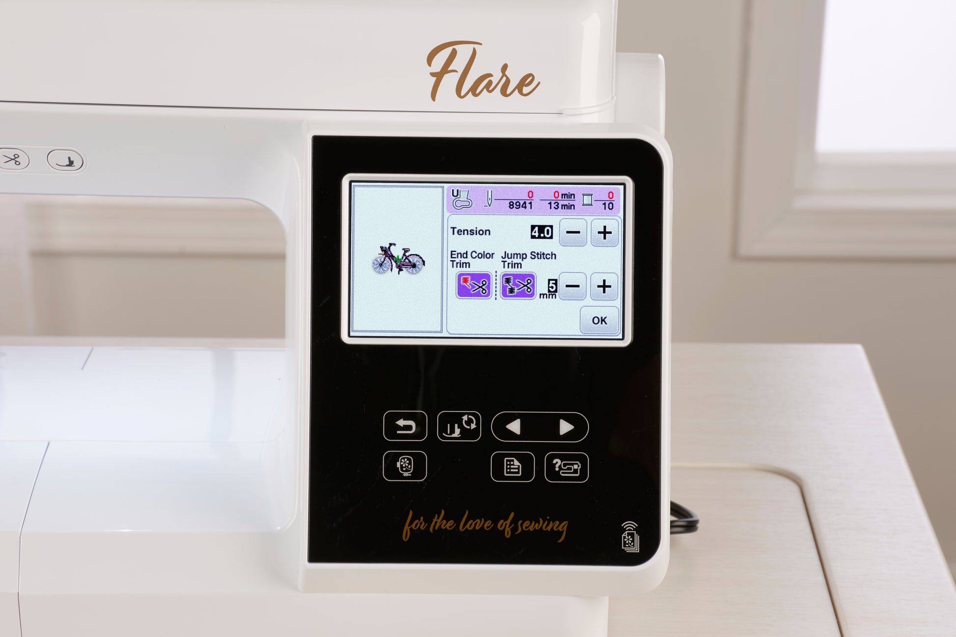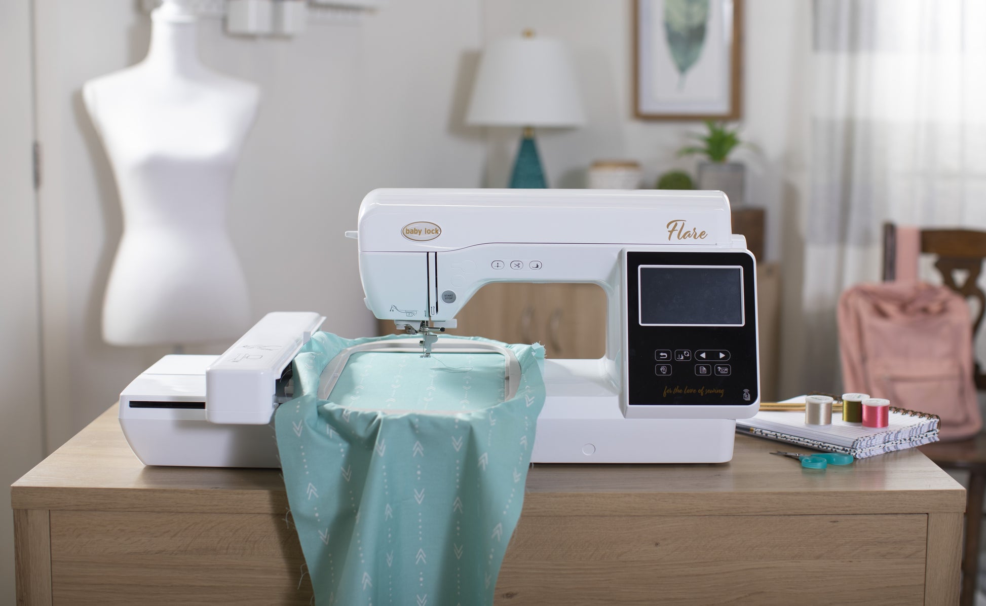 Add your own unique touch to every project with the Baby Lock Flare embroidery machine. Packed with user-friendly features and technology, you’ll easily access and edit designs, embroidery fonts and more all in one place.