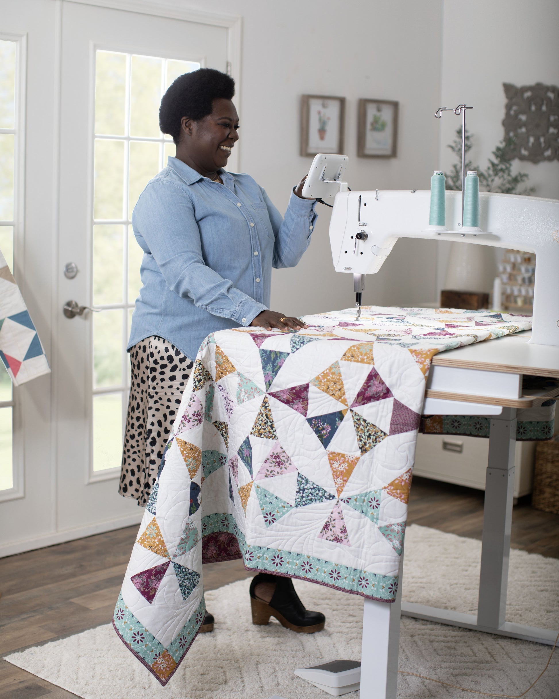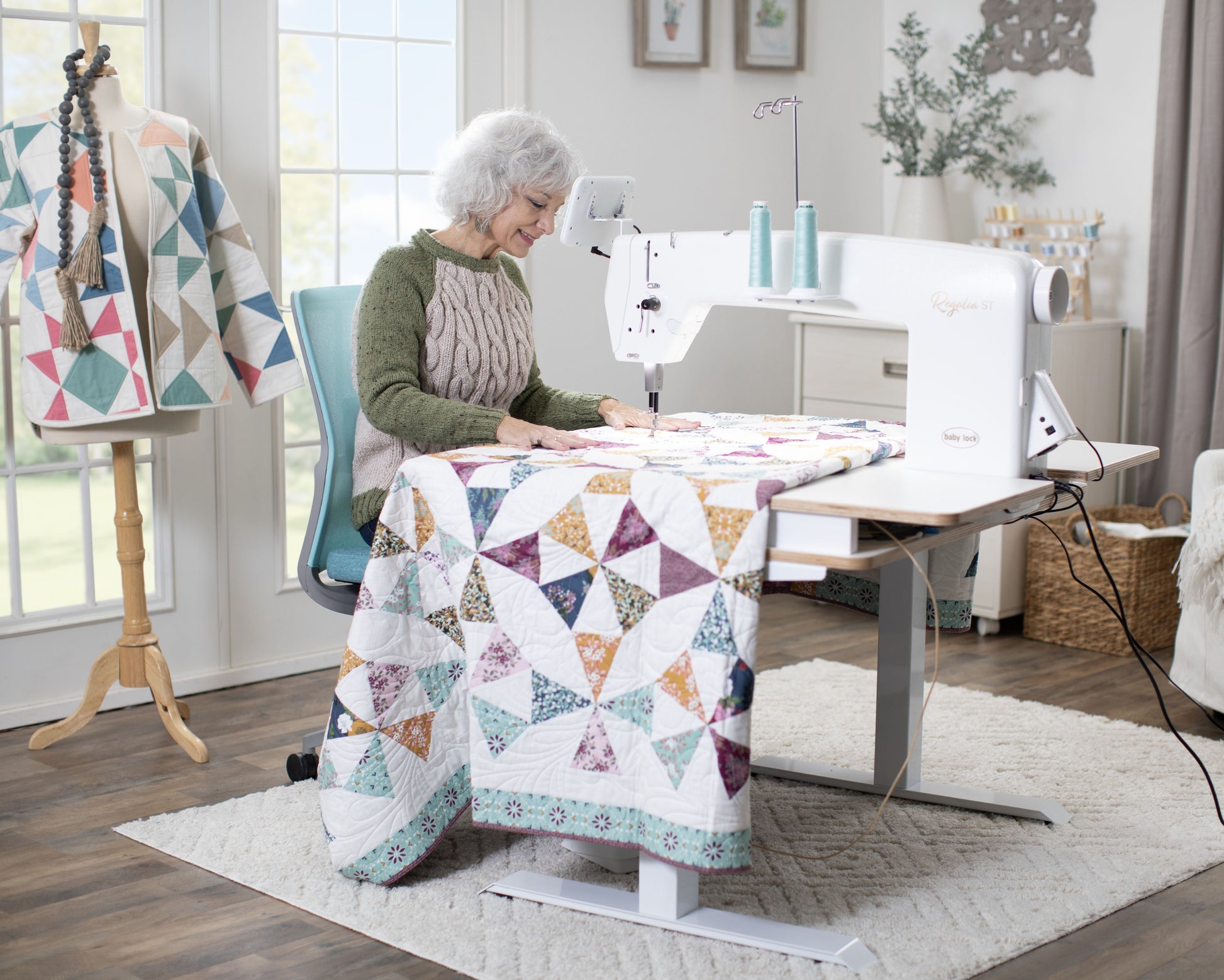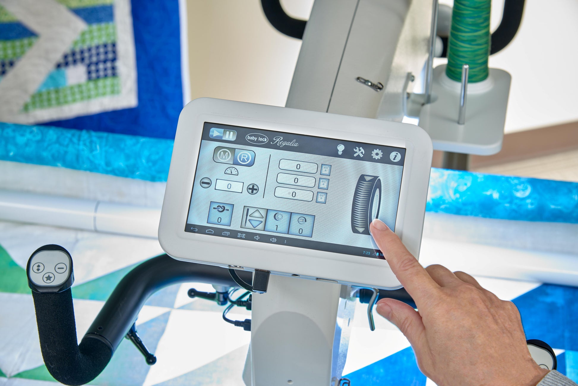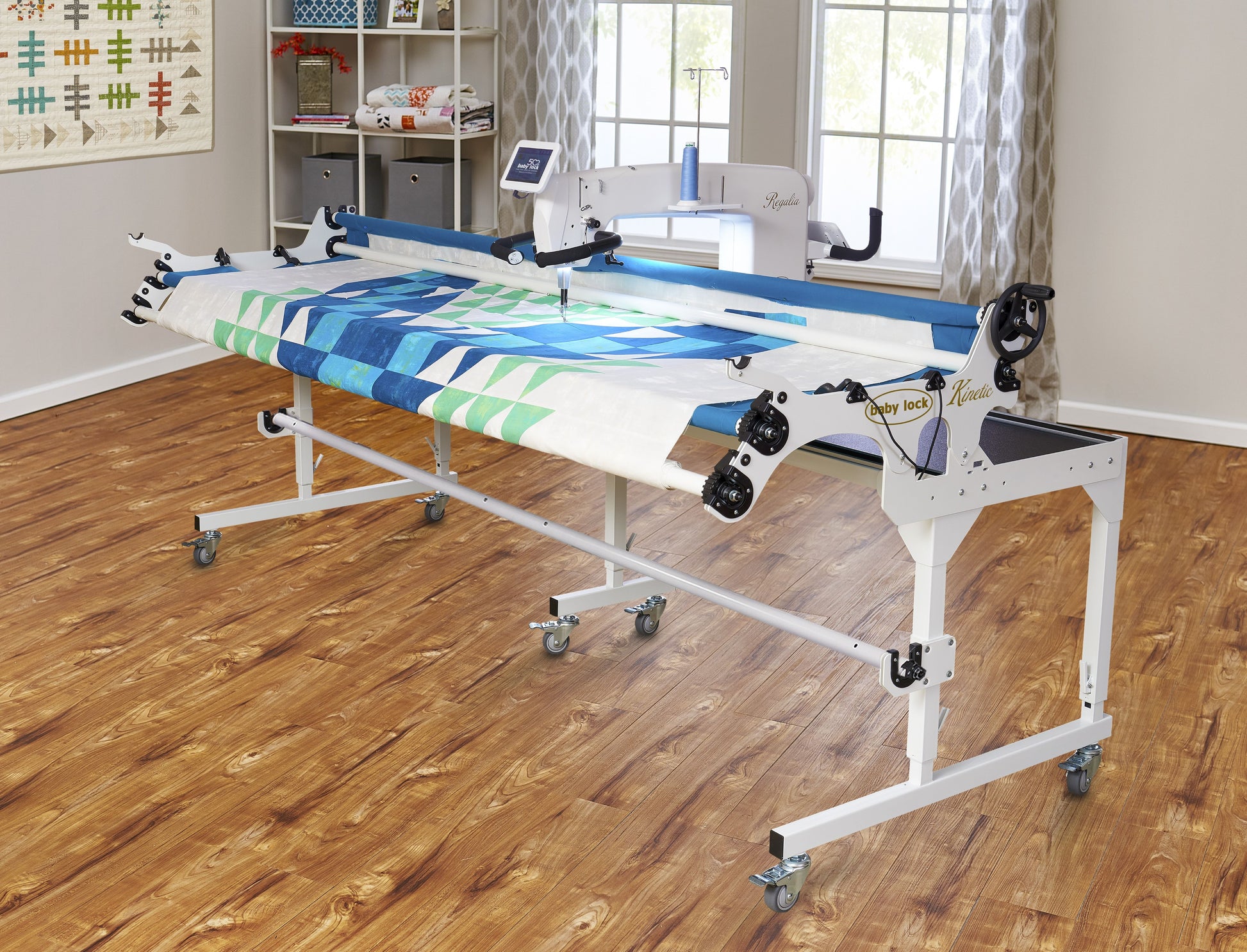 Give your quilting projects the royal treatment on the Regalia-Baby Lock's largest longarm machine yet! With 20" of workspace and a lightning-fast 2,500 stitches per minute, the Baby Lock Regalia longarm quilting machine is ready to easily finish quilts of any size. It features a built-in Stitch Regulator that ensures smooth, precise stitching for a harmonious finish.