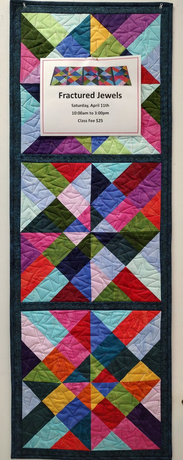 Come learn how to make this unique block, it's easier than it looks! Using a bright assortment of fabrics, you can create interesting blocks that can be arranged in many ways to create table toppers, quilts, and more.