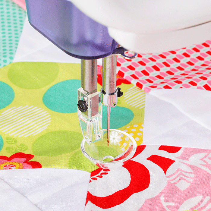The glide foot is a bowl-shaped type foot intended to be used for quilting when gliding along applique and other slightly three-dimensional embellishments.