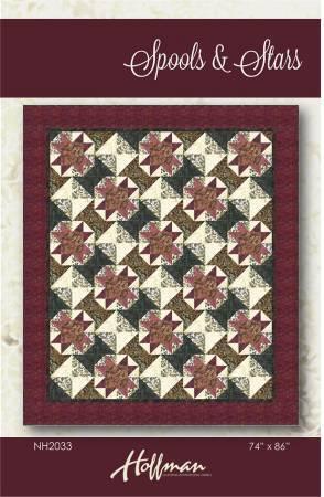 This pattern is designed with Hoffman Batik Fabrics. Can you see them? The Spools & Stars? What a fun quilt. The quilt finishes at 74in x 86in.